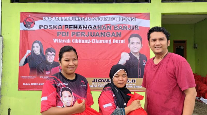 DAILYBEKASI.COM, CIBITUNG – Badan Pemenangan (BP) Pemilu PDI Perjuangan Kabupaten Bekasi Jiovanno SH menyalurkan bantuan sembako berupa beras dan kebutuhan pangan lainnya, kepada korban banjir di Perumahan Logam Bangun Setia (LBS ) II, Desa Muktiwari Kecamatan Cibitung, (3/3/2023).
