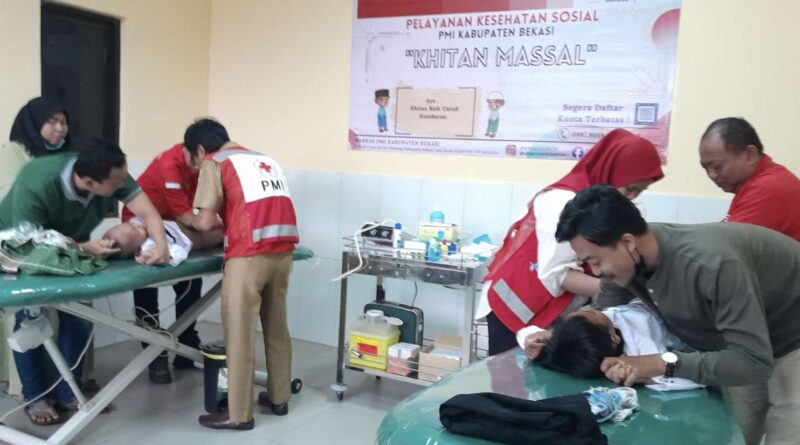 DAILYBEKASI.COM, CIBITUNG – Palang Merah Indonesia (PMI) Kabupaten Bekasi melaksanan kegiatan pelayanan kesehatan sosial yakni Khitan Massal atau Sunatan Gratis yang dijadikan sebagai program kerja untuk tahun 2023. Program sunatan tersebut nantinya akan dilaksanakan setiap bulan, yang dikhususkan untuk membantu dan meringankan beban masyarakat Kabupaten Bekasi.