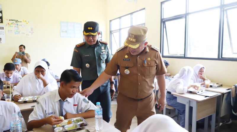 DAILYBEKASI.COM, PEBAYURAN – Pj Bupati Bekasi Dedy Supriyadi bersama jajaran Forkopimda meninjau langsung program makan bergizi gratis (MBG) bagi para peserta didik di SMAN 1 Pebayuran, yang telah dilaunching pemerintah pusat di Kecamatan Pebayuran pada Senin, (06/01/2025).