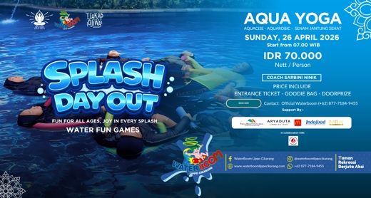DAILYBEKASI.COM, Cikarang, April 2026 — Dalam upaya menghadirkan pengalaman rekreasi yang sehat dan menyenangkan, WaterBoom Lippo Cikarang kembali menghadirkan event bertajuk “Splash Day Out: Aqua Yoga”, sebuah aktivitas wellness yang menggabungkan olahraga air dengan relaksasi pikiran. Kegiatan ini akan diselenggarakan pada Minggu, 26 April 2026 mulai pukul 07.00 WIB, dengan harga tiket sebesar IDR 70.000 nett per orang.
